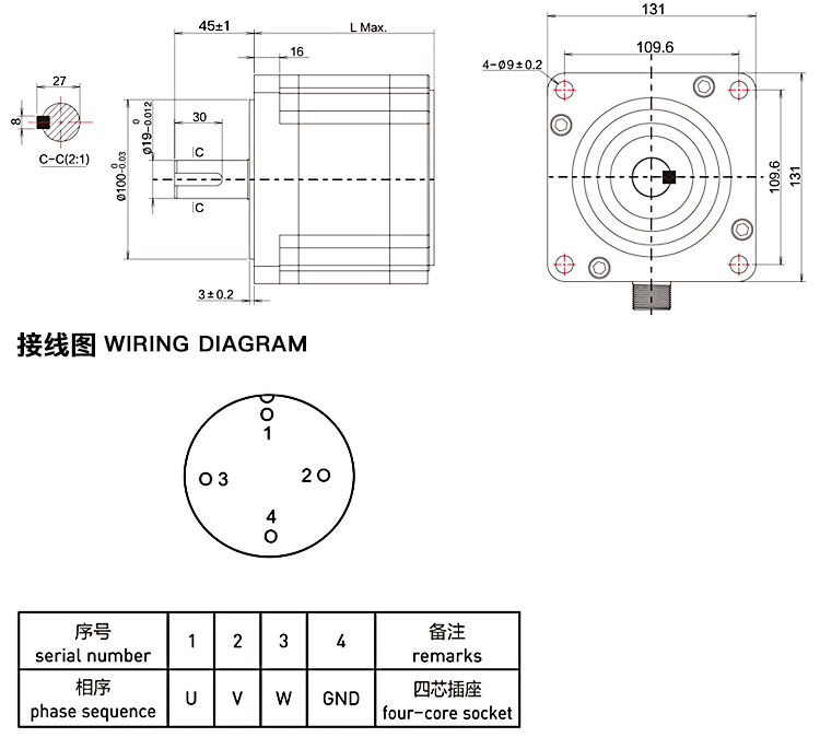 130mm 三相混合式步進(jìn)電機(jī)