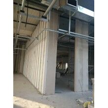 ④ 鋼結(jié)構(gòu)工程中相比夾芯彩鋼合板,防火性能優(yōu)勢更加明顯。本板材為無機材料加工,遇火不燃,100mm厚耐火極限即可達3.5小時以上。