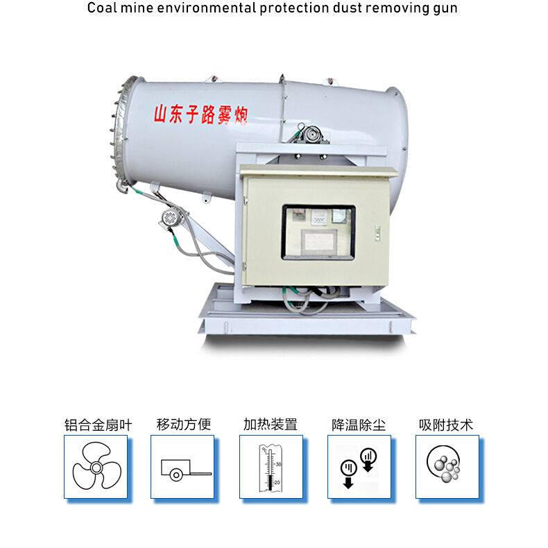 子路環(huán)??萍加邢薰疽豢钔ㄟ^(guò)高壓風(fēng)機(jī)將儲(chǔ)存的水壓縮成灰塵大小,在利用不銹鋼噴嘴部位將水霧化吹向高空凈化空氣的一種新型環(huán)保除塵產(chǎn)品。這款產(chǎn)品名字叫高射程霧炮機(jī),