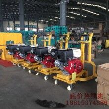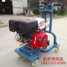 是由動力強(qiáng)勁的發(fā)動機(jī)作為動力源,通過三角帶帶動主軸高速旋轉(zhuǎn),手搖升降手輪使主軸下降,切割裂縫,前行走輪采用萬向輪,使整機(jī)在工作中可以按照裂縫自然形成的曲線進(jìn)行切槽。