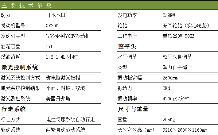 奧力德混凝土激光整平機在施工中的優(yōu)點: 平整度及水平度質(zhì)量更高——可達(dá)到激光級精度的地面標(biāo)高,地面平整度和水平度是手工整平作業(yè)方式的2-3 倍,混凝土密實度提高20%以上,且適合干硬性混凝土、纖維混凝土及大骨料混凝土。 減少分倉縫,可做到無分倉縫施工。大面積混凝土地面上分倉縫由于養(yǎng)護及模板支護原因會產(chǎn)生沿縫破損等缺陷,采用激光整平后切縫技術(shù)可以避免這些問題。 施工速度更快——作業(yè)工效提高100-300%(每小時可完成300平方米的鋪注工作,平均每天可完成2000-3500 平方米),并減少人工30%以上,特別適合工期要求緊、鋪注面積大、質(zhì)量要求高的工程項目。 地面整體性更好——非常容易實現(xiàn)大面積整體鋪注,這種整體鋪注技術(shù)一方面可以避免地坪分層澆注帶來的易空鼓、易開裂等問題,另一方面可以減少大量的施工縫,使地面的整體性更好。這是采用其它施工工藝不易做到的。 可減少地面的后期維護費用——由于大面積整體鋪注可減少3 倍以上的施工縫——而施工縫是很容易受輪載作用而產(chǎn)生破損的,從而可減少地面的后期維護費用。