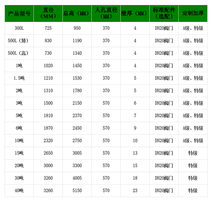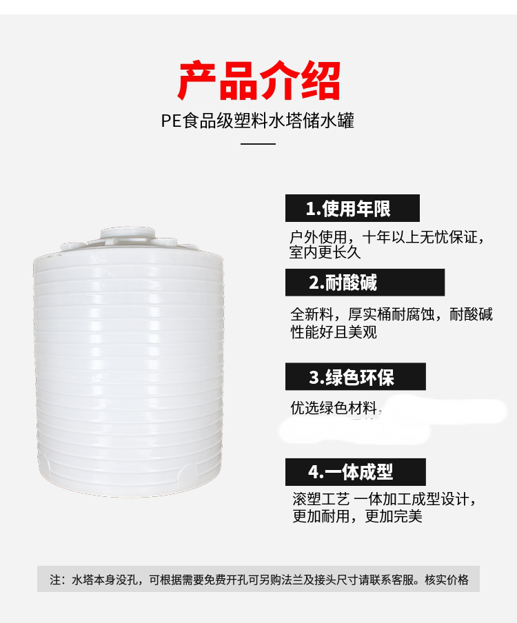常壓產(chǎn)品,不可施于超過常壓(1個(gè)大氣壓力)以上之正壓或負(fù)壓;若需攪拌或酸堿濃度比重在1.2以上時(shí),*好加裝補(bǔ)強(qiáng)套及加厚桶體壁厚為宜。此項(xiàng)特性尤其在盛裝容積超過10000L以上的桶體特需注意之。(硫酸、硝酸濃度超過28%一律使用特級產(chǎn)品并*好加裝補(bǔ)強(qiáng)套)