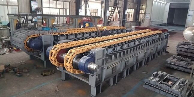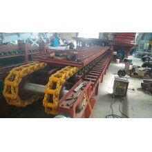 由于板喂機(jī)是通過(guò)鏈輪、鏈條、鏈板、傳動(dòng)等一系列全鋼結(jié)構(gòu)的剛性機(jī)架將物料拖出庫(kù)底的。所有的料倉(cāng)壓力由板式給料機(jī)承擔(dān),避免的由于料倉(cāng)壓力過(guò)大把皮帶秤壓壞現(xiàn)象。