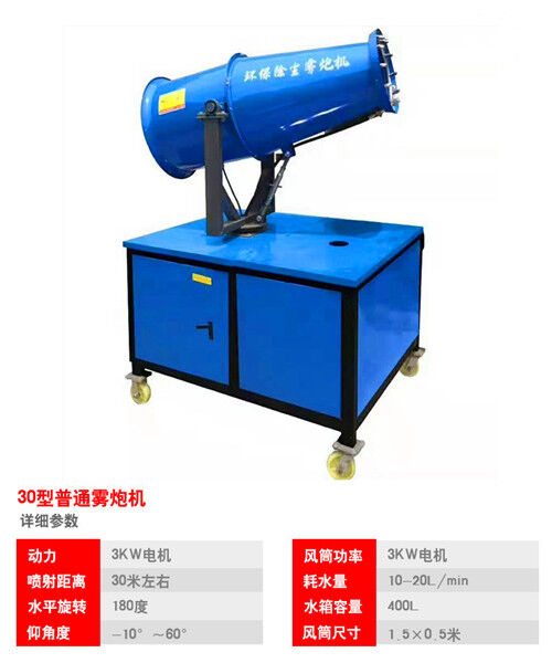5、 噴霧時(shí)可按照需求進(jìn)行水平噴射角度和俯仰角度調(diào)整,水平扭轉(zhuǎn)可在電控箱上或遙控器上點(diǎn)動(dòng)“向左”或“向右”按鈕進(jìn)行調(diào)整,俯仰角可按照必要在電控箱上或遙控器上點(diǎn)動(dòng)“向上”或“向下”按鈕進(jìn)行調(diào)整;液體通過(guò)液泵產(chǎn)生霧狀由噴嘴噴至噴筒口,再經(jīng)風(fēng)機(jī)風(fēng)力切割破裂后噴向物體。
