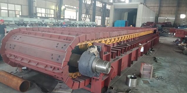 近年來, 對板式給料機的需求量不斷擴大, 除了作為給料機使用外, 逐漸也用來轉(zhuǎn)運物料。從幾年來的供貨及需求情況看, 除訂貨量增大外, 也要求長度增大,板式給料機長度已達30米以上, GBL中型長度也超過20米.因此, 整體式機架已不能滿足用戶要求, 可采用分段裝配式, 即分標堆節(jié)非標準節(jié)頭節(jié)和尾節(jié), 這樣便于制造安裝和運輸,另外尾節(jié)部分應(yīng)配置受料漏斗.