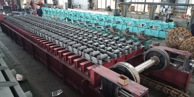 某廠有2條新型干法生產(chǎn)線,第1條2000t/d生產(chǎn)線于2009年投產(chǎn),第2條2300t/d生產(chǎn)線于2013年投產(chǎn),兩線共用1臺石灰石板式給料機(jī)。該機(jī)是德國HAZEMAG公司制造,規(guī)格為1800mmx11200mm,設(shè)計能力為600--800t/h,安裝傾角為22°,配套的驅(qū)動裝置為液壓馬達(dá)和行星減速器,它具有無級調(diào)速、輸出扭矩大且占地面積小的優(yōu)點。但自從二線投產(chǎn)后,礦石需用量翻番,使得板式給料機(jī)的運(yùn)轉(zhuǎn)率成倍地增加,并且經(jīng)過十幾年的運(yùn)行,驅(qū)動裝置的許多液壓元件已基本到了使用壽命極限,先后多次出現(xiàn)了突發(fā)性的故障,無法正常生產(chǎn)。由于進(jìn)口備件價格昂貴,進(jìn)貨周期長,必須對該機(jī)驅(qū)動裝置進(jìn)行國產(chǎn)化改造。