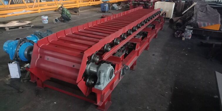 1、具有耐用時(shí)間長、維護(hù)簡(jiǎn)單、維護(hù)成本低的優(yōu)點(diǎn)。鏈板與物料直接接觸部位的材料選用耐磨性鋼材,但是鋼材的硬度越高,可加工成型的難度也大,而且易開裂,試驗(yàn)多種材料的結(jié)果,要既保證韌性同時(shí)也具有較高的耐磨性能。密封板式喂料機(jī)的耐磨方式是在每個(gè)鏈板上加上了弧面,固定兩根耐磨鋼條(方型或圓型)。物料從進(jìn)料口落入到鏈板上,由于物料自然具有的顆粒分級(jí)作用,細(xì)料和細(xì)碎料會(huì)自動(dòng)落到最下面的鏈板上面。上述的兩條鋼條有較硬的固定這些碎粉料而不會(huì)流走。在整個(gè)鏈板表面上就覆蓋有一層細(xì)碎物料,上面的大顆粒物料就不再與鏈板接觸,有效防止鏈板被磨損。合金構(gòu)造的鏈板及獨(dú)立的潤滑系統(tǒng)以及設(shè)備的結(jié)構(gòu)和輸送形式使設(shè)備的維護(hù)及維修更加方便簡(jiǎn)單,可以單獨(dú)更換損壞的鏈板和槽板。
