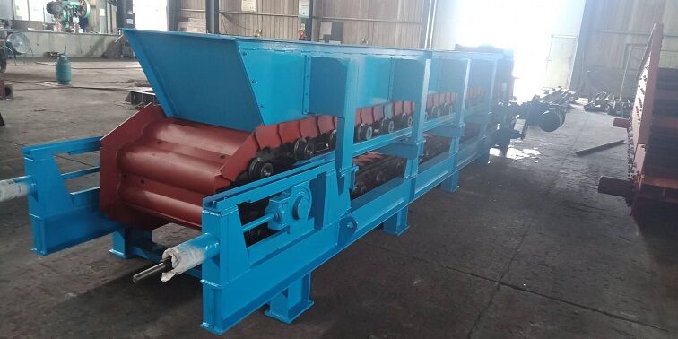 該裝置的安裝要點在于對鋼絲繩仲人下料口深度和彈簧拉力的調(diào)整,要以不斷料不溢料為準(zhǔn)。鋼圓盤離給料機(jī)過近,稍微有點料層厚度板喂機(jī)就會停止,影響正常下料;如果過高又起不到防溢料的作用。彈簧拉力過大過小也是如此。因此,調(diào)節(jié)時要反復(fù)耐心地進(jìn)行,相互配合,才能達(dá)到預(yù)期效果。