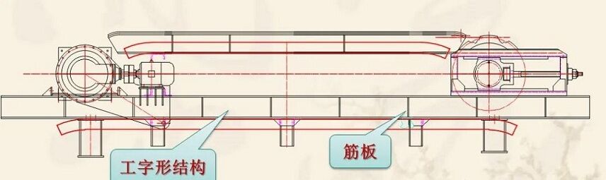 是由鋼板焊接而成的工字形結(jié)構(gòu),在上下翼緣板之間焊有若干筋板,兩個工字形主梁由若干槽鋼、工字鋼組焊為一整體,其結(jié)構(gòu)堅固、穩(wěn)定。