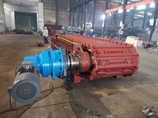 3) 垃圾成分的復(fù)雜性,易抱團(tuán),不易分散,從受料斗中拉出時(shí) ,板式給料機(jī)上料層較厚,易間斷性成堆地掉入下道設(shè)備,給下道設(shè)備帶來(lái)新的難題。 為了保證從料斗中拉出的垃圾能均勻地送入下道設(shè)備 ,在板式給料機(jī)頭部卸料位置設(shè)有一均勻撥料滾筒,其左右、 上下位置均可調(diào)整,以保證能均勻布料。