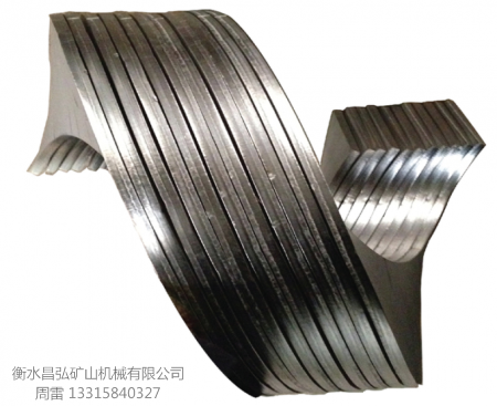 絞龍葉片具有剛性好,表面光潔,形狀規(guī)整,內(nèi)外徑可調(diào),長短可定,精度高,便于安裝,避免了傳統(tǒng)的手工焊接葉片因焊接質(zhì)量造成的弊端,也提高了絞龍葉片的加工能力,扎出的絞龍葉片材質(zhì)是碳鋼板,Q235,Q345和304不銹鋼板,特別是碳鋼板,絞龍葉片表面產(chǎn)生冷作硬化,硬度和耐磨性提高一倍左右,特別是外沿硬度可達(dá)HB240,希望廣大用戶不必?fù)?dān)心邊緣薄的原因,此設(shè)備可調(diào)試扎出幾十種規(guī)格的絞龍葉片。