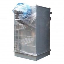 單機(jī)除塵器主要由灰斗、過(guò)濾室、凈氣室、支架、提升閥、噴吹清灰裝置等部分組成。工作時(shí),含塵氣體由風(fēng)道進(jìn)入灰斗。大顆粒的粉塵直接落入灰斗底部,較小的粉塵隨氣流轉(zhuǎn)折向上進(jìn)入過(guò)濾室,并被阻留在濾袋外表面,凈化了的煙氣進(jìn)入袋內(nèi),并經(jīng)袋口和凈氣室進(jìn)入出風(fēng)倒,由排風(fēng)口排出。隨著過(guò)濾的不斷進(jìn)行,濾袋外表面的粉塵不斷增加,設(shè)備阻力隨之上升。當(dāng)設(shè)備阻力上升到一定值時(shí),應(yīng)進(jìn)行清灰操作,清除濾袋表面的積灰。