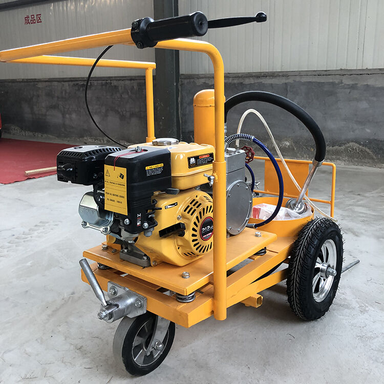 冷噴(冷漆)劃線機(jī):冷噴劃線是一種歷史最為悠久的一種常規(guī)型劃線,該類劃線一般由一臺常溫劃線機(jī)即可完成施工。冷噴劃線機(jī)按照其劃線方式不同可分為高壓無氣型、低壓空氣輔助型等兩個類型;按照其所使適用涂料的種類不同又分為常溫熔劑型、常溫水性及加熱溶劑型三個類型(廣義的常溫標(biāo)線機(jī)械也包括雙組份型,尤其是雙組份噴涂型,它是一種兼具常規(guī)常溫涂料及雙組份涂料噴涂功能的廣譜型劃線機(jī)),如下圖手推式高壓無氣冷噴劃線機(jī)