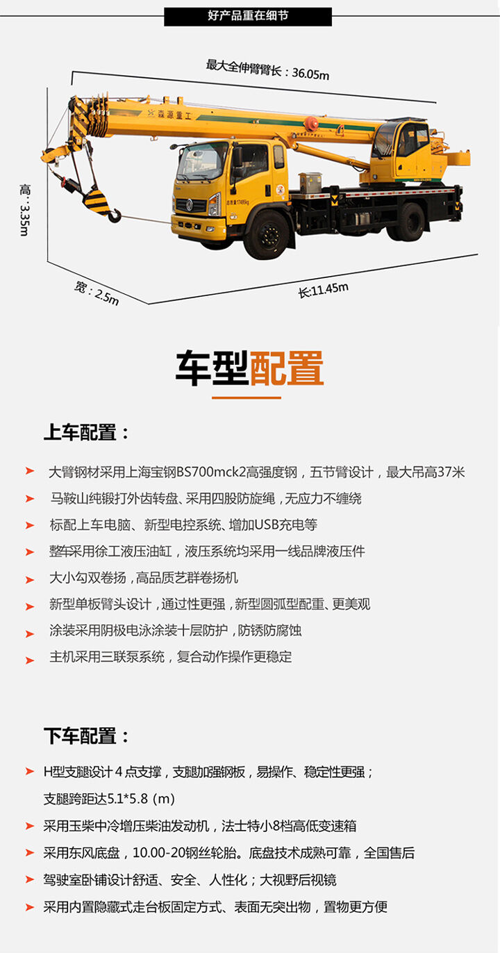 森源十噸汽車吊適用于狹窄工況的小型吊車 東風(fēng)