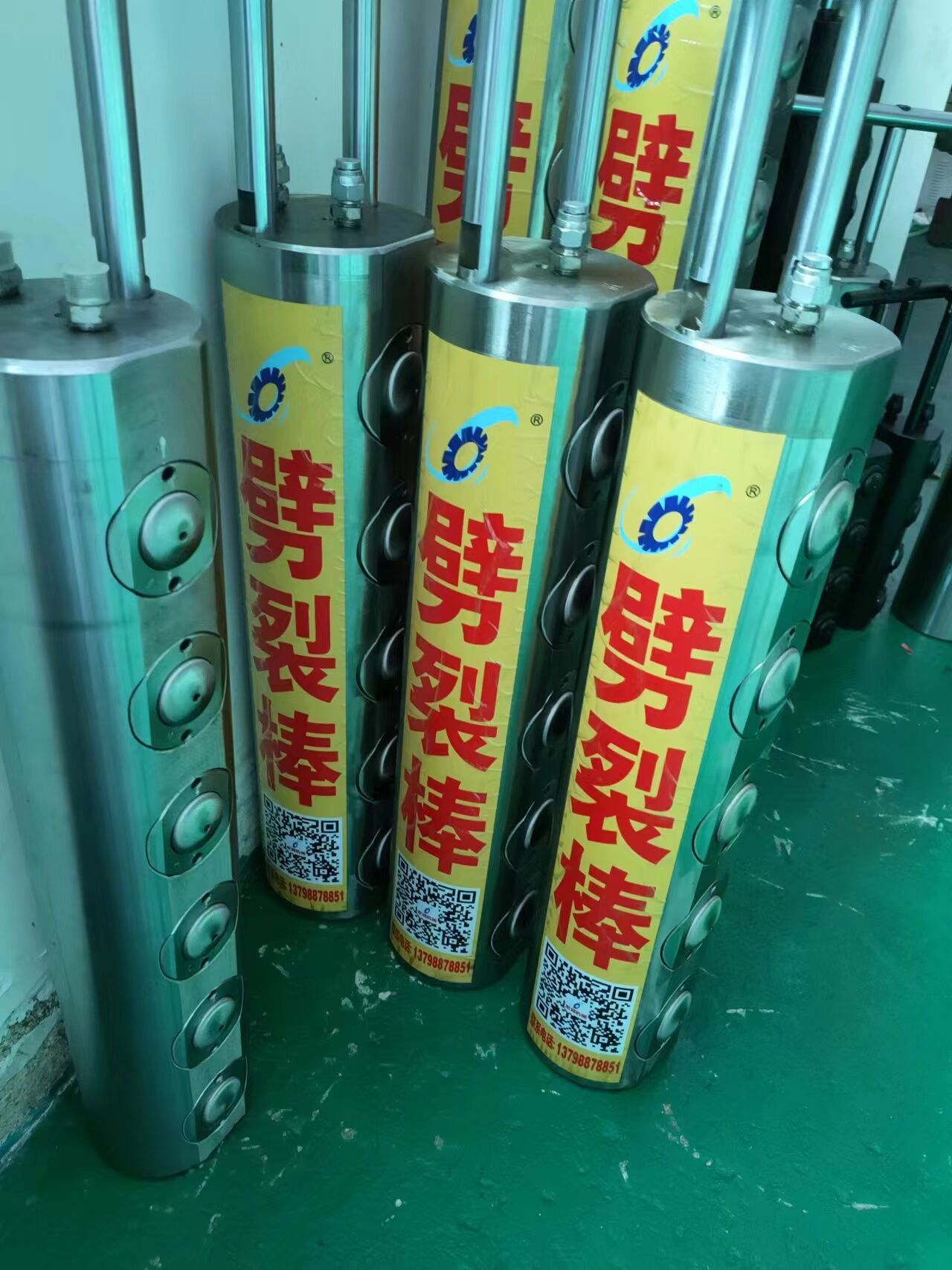 液壓柱塞式棒原理及組成液壓柱塞式棒主要由液壓泵站和劈裂器(棒)兩部分組成。120-150MP超高壓油泵站輸出的高壓油驅動油缸產(chǎn)生巨大推動力(1300-1500噸),并推動劈裂棒上的活動活塞向外運動,從而使活塞產(chǎn)生的作用力作用于被體孔壁,巖石在巨大的作用力下按預定方向裂開。