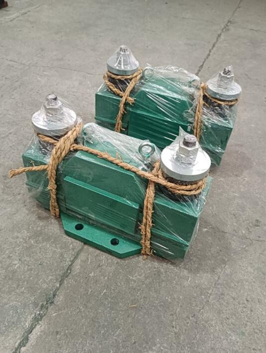 ⑼ 斜溜槽(見圖12):對于厚度小于3-3.5毫米的料槽,若在中心線靠下一點的部位安裝,便會在料槽下端產(chǎn)生強烈的振動。用于圓筒形料槽時,可先把振動器裝在平板上,然后用U型螺栓固定在管子上。安裝單臺振動器時,一般應(yīng)裝在溜槽下端40%的位置上。安裝多臺時,應(yīng)***同步運行,*下部的一臺應(yīng)裝在距離溜槽端部45-60厘米處。