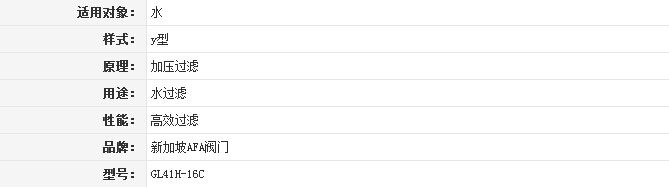 歸屬行業(yè):AFA閥門Y型過濾器
