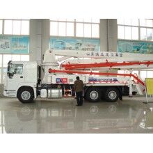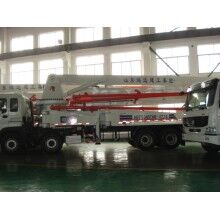 鐵力士牌HDT5420THB-52/5型混凝土泵車是山東鴻達建工集團有限公司在中國重汽集團濟南卡車股份有限公司同期申報的豪濼牌ZZ5437N5067C1型泵車底盤基礎(chǔ)上,加裝混凝土泵等專用設(shè)施開發(fā)、研制的。該車屬N3類柴油車,發(fā)動機布置方式為縱置,車輛驅(qū)動型式為8×4,前置后驅(qū)動。