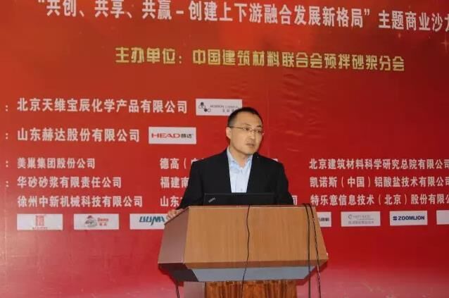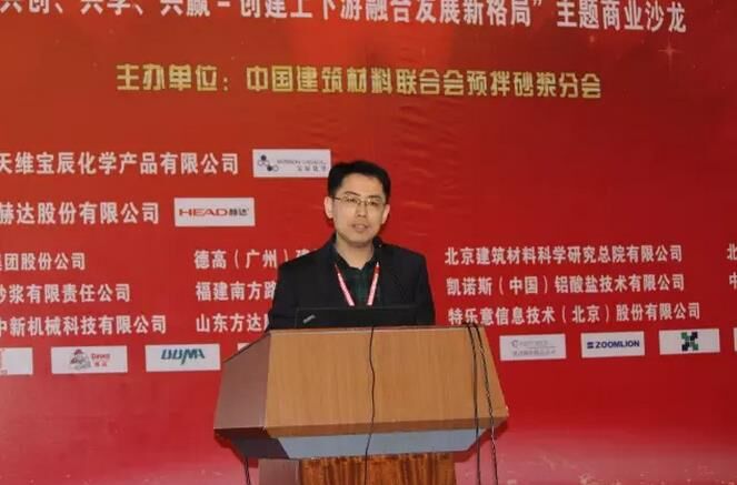 預拌砂漿分會理事單位,北京建筑材料科學研究總院有限公司新產(chǎn)業(yè)發(fā)展部經(jīng)理張吉秀博士則講述了“高性能石膏基自流平砂漿開發(fā)與應用”;預拌砂漿分會副理事長單位、德高(廣州)建材有限公司技術經(jīng)理王鴻博則講述了“德高無塵在行動之彩色瓷磚填縫料”;預拌砂漿分會副理事長單位、華砂砂漿有限責任公司市場總監(jiān)王曉峰則以“砂漿系統(tǒng)化服務在工程領域的運行優(yōu)勢”為題進行了分享;預拌砂漿分會常務理事單位、特樂意信息技術(北京)股份有限公司平臺事業(yè)部總經(jīng)理郭琳妹更是將近將兩年最熱點的“互聯(lián)網(wǎng)+”與砂漿結(jié)合進行了分享。