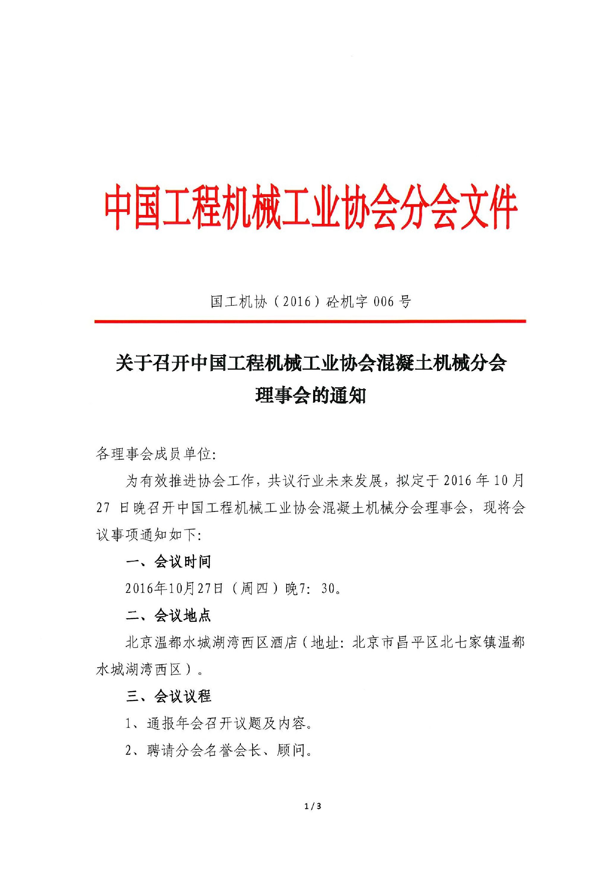 關于召開中國工程機械工業(yè)協會混凝土機械分會理事會的通知