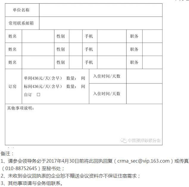 2、請(qǐng)參加研討會(huì)的企業(yè)于2017年4月30日前提交參會(huì)回執(zhí)表,以便妥善安排會(huì)議資料和住宿。