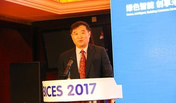 中國工程機(jī)械工業(yè)協(xié)會(huì)常務(wù)副會(huì)長兼秘書長蘇子孟做BICES 2017展會(huì)倒計(jì)時(shí)100天主題發(fā)言。