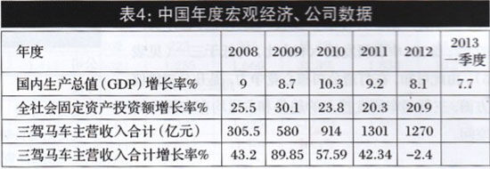 在連續(xù)多年保持高速增長(zhǎng)之后,三駕馬車內(nèi)部約宅因素增多、外部環(huán)境嚴(yán)峻等狀況,均在年報(bào)中得到反映.其多項(xiàng)財(cái)務(wù)指標(biāo)出現(xiàn)回落趨勢(shì)。企業(yè)發(fā)展到于—個(gè)臨界點(diǎn),調(diào)整發(fā)展戰(zhàn)略的時(shí)間窗口已經(jīng)開啟。