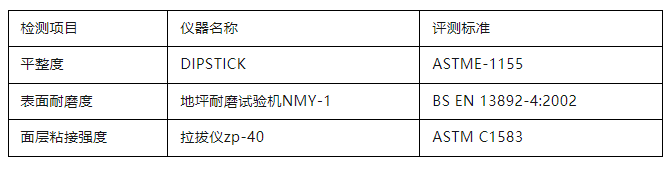 參評項目包括混凝土面層地坪、水泥砂漿面層地坪、整體樹脂地坪系統(tǒng)三大類(下分13種細分地坪)?!癢OCA 地坪獎-亞洲賽區(qū)”(WOCA AWARDS)執(zhí)行國際先進的檢測檢驗標準,對候選項目進行現場性能檢測,依據三個維度——平整度(FF/FL Testing)、表面耐磨度(BCA Abrasion Testing)、面層粘接強度(Pull-off Adhesion Testing)的測評數值加權系數后得出最終分數進行評選。