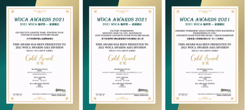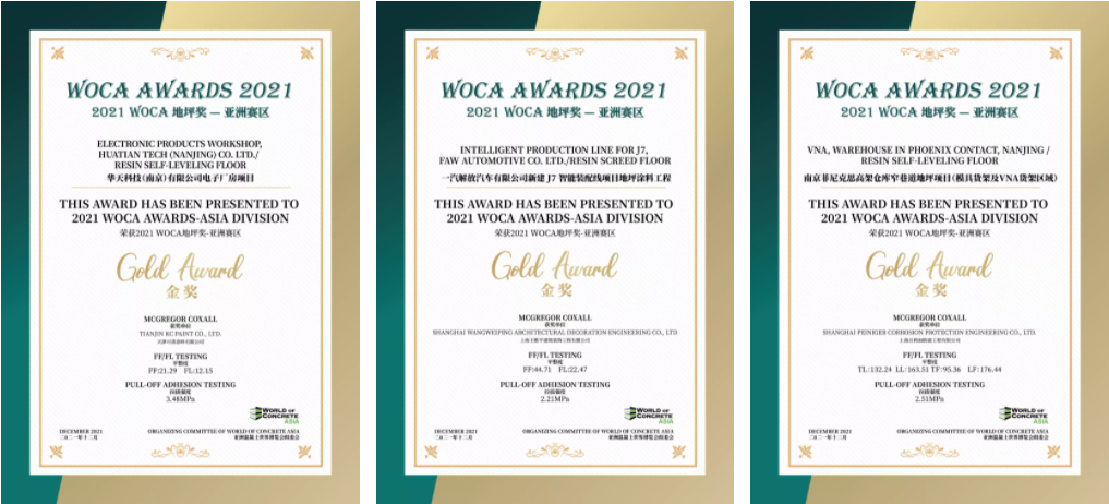 經過對多個項目進行地坪檢測,三大類中13個優(yōu)秀項目獲得了2021 WOCA 地坪獎(WOCA AWARDS)-亞洲賽區(qū)的榮譽。