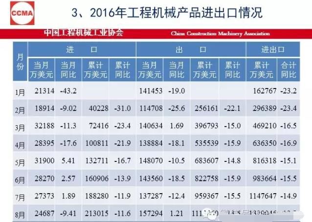 今年9月份挖掘機(jī)同比銷量增加71.4%,1到9月增長(zhǎng)26.3%。出口還是在高位,但是還有13%左右的降幅。在裝備制造業(yè)里,尤其是機(jī)械行業(yè)里,我們還是比較好的,進(jìn)口的數(shù)是越來越少。