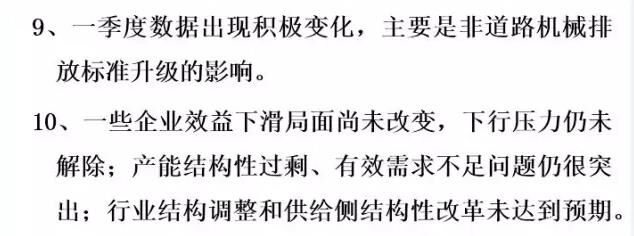 我個(gè)人總結(jié),今年的運(yùn)行情況有這樣十個(gè)方面。第一,從整個(gè)全行業(yè)各企業(yè)的資產(chǎn)規(guī)模上看,目前趨于穩(wěn)定,變化幅度很小,不像前兩年振動(dòng)那么大。第二,從資產(chǎn)負(fù)債率來說,現(xiàn)在負(fù)債率是在60%左右,全國的工業(yè)企業(yè)是56%。所以,這個(gè)行業(yè)的資產(chǎn)負(fù)債率目前看也是很好的。這個(gè)需要引起大家的關(guān)注和分析,我們也希望后幾個(gè)月情況可以穩(wěn)定向好。還有自主品牌市場(chǎng)占有率,在國內(nèi)市場(chǎng)還是保持高位,從全行業(yè)來看在90%以上。那么,產(chǎn)業(yè)的集中度又進(jìn)一步地增強(qiáng)了,但有一些企業(yè)挺無助的,出局了,進(jìn)口額下降。今年按照環(huán)保部5號(hào)令,全行業(yè)工程機(jī)械產(chǎn)品實(shí)現(xiàn)了新的標(biāo)準(zhǔn)升級(jí)。整個(gè)產(chǎn)品進(jìn)行了更新?lián)Q代,這個(gè)非常難能可貴。最后是產(chǎn)能結(jié)構(gòu)性過剩,有效需求不足問題仍然突出,行業(yè)結(jié)構(gòu)調(diào)整還有供給側(cè)結(jié)構(gòu)改革遠(yuǎn)遠(yuǎn)沒有達(dá)到預(yù)期。即便是按照現(xiàn)在的挖掘機(jī)銷量5500多臺(tái),就算是6000臺(tái),產(chǎn)能又有多少?一旦市場(chǎng)回暖,一些企業(yè)家還是會(huì)頭腦一熱,這樣大一個(gè)產(chǎn)能釋放出來的產(chǎn)量是什么局面?我們必須保持一個(gè)清醒的頭腦。